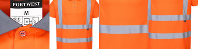 100% textured polyester. Conforms to EN ISO 20471: 2013 + A1: 2016 class 3.RIS-3279-TOM (orange only).Lightweight breathable birdseye fabric.Contrast ribbed collar.Contrast three button placket.Two reflective bands on front, back, around sleeves and one over each shoulder.Side vents.Twin needle stitching.